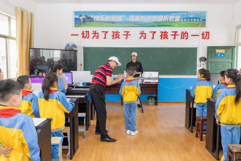 4月23日,在湖南艺术职业学院乡村振兴工作队队长米宏彬和学校2005级优秀毕业生、乐来乐好乡村音乐行动发起人吴选作的共同努力下,郎朗艺术基金会公益项目“快乐的琴键”百雀羚•郎朗音乐教室落成仪式在洞口县文昌街道第一小学举行。县级领导侯永君出席活动。吴选作和米宏彬还来在音乐教室为同学们上了一堂生动有趣的音乐课。