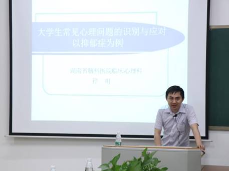 在讲座中,程明详细讲解了心理健康与不健康的区别、病理心理及行为的八个判断标准,并借助“生物-心理-社会”的医学模式阐释了异常心理产生的原因,重点以抑郁症为例教授了心理问题识别与应对的技巧。