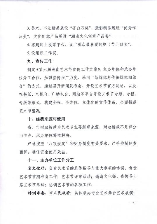 湖南省文化厅关于举办第六届湖南艺术节的通知