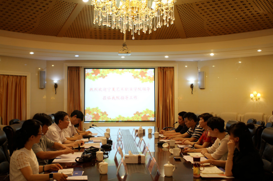 6月9日上午,宁夏艺术职业学院党委书记刘志斌带领该院办公室、教务处、学生处、公共系等部门负责人来我院考察交流。学院纪委书记彭爱莲热情接待了客人,并在南院实验剧院会议室主持召开座谈会,党政办、组织人事处、教务处、学工处等部门相关负责人参加座谈。